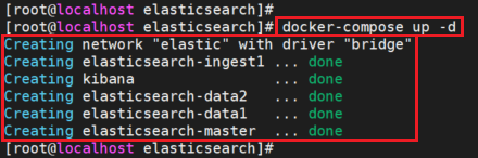 elastic이라는 네트워크와 컨테이너들이 생성된 것을 확인할 수 있습니다.